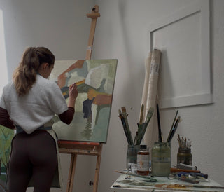 Maryam Miller is a Colorado-based artist known for her modern landscape paintings. Inspired by the mountains surrounding her home, she creates artwork that brings a sense of place, story, and connection to nature into beautifully curated spaces. She is also the co-founder of Near & Far, a pop-up gallery curating art experiences in luxury homes and gathering spaces throughout Colorado.